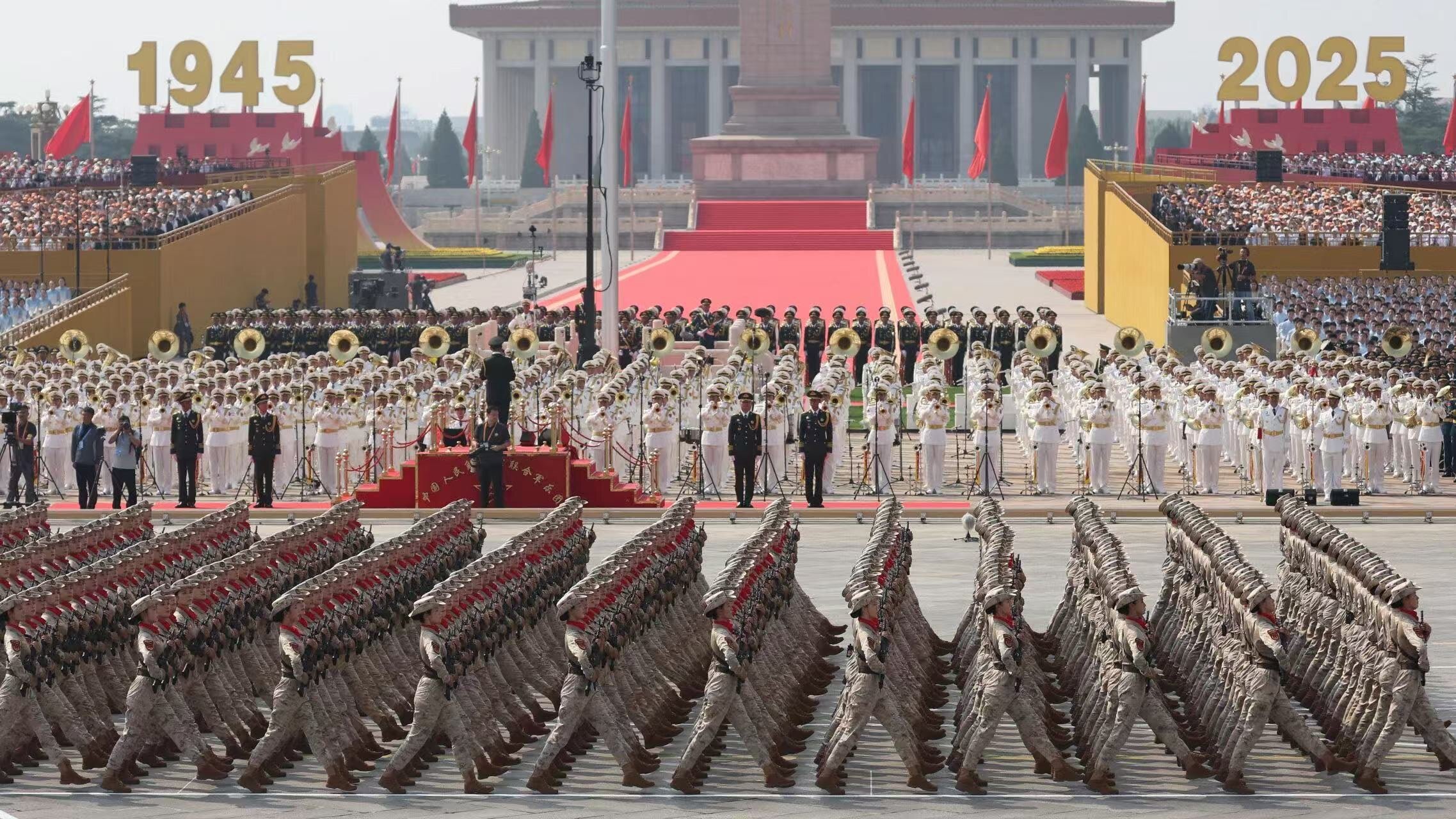 此次閱兵式在北京天安門廣場隆重舉行,歷時約70分鐘。雄壯的軍樂聲中,整齊劃一的徒步方隊、先進精良的裝備方隊以及威武雄壯的空中護衛(wèi)梯隊依次亮相,集中展現(xiàn)了我國武裝力量體系的新布局和實戰(zhàn)化聯(lián)合編組能力,展示了國家強大的軍事實力和綜合國力,體現(xiàn)了中華民族的浩然正氣。