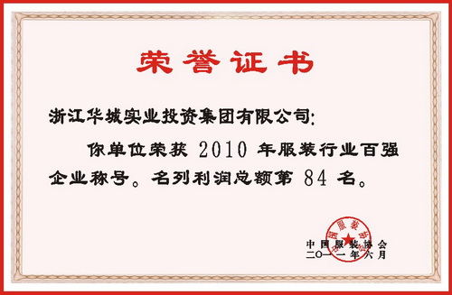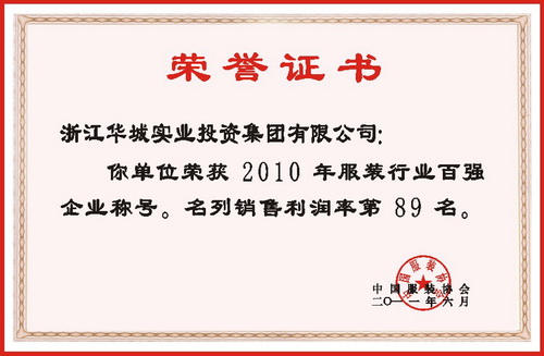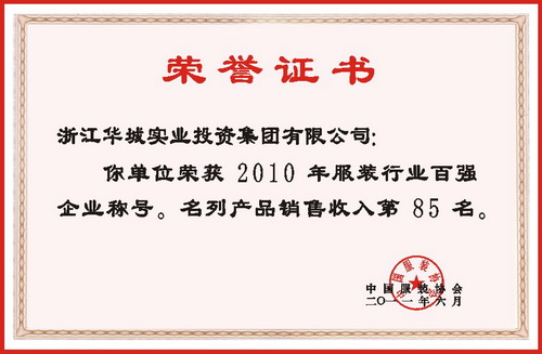 華城集團(tuán)作為平湖服裝行業(yè)的骨干企業(yè),不僅排列于平湖服裝行業(yè)十強(qiáng)之首,而且在全國(guó)服裝行業(yè)百?gòu)?qiáng)企業(yè)排序中,浙江華城實(shí)業(yè)投資集團(tuán)有限公司連續(xù)榜上有名,榮獲2010年全國(guó)服裝行業(yè)百?gòu)?qiáng)企業(yè)榮譽(yù)稱號(hào),名列利潤(rùn)總額第84名;產(chǎn)品銷售收入第85名;銷售利潤(rùn)第89名共三個(gè)指標(biāo)的榮譽(yù)稱號(hào),這是集團(tuán)公司自2005年以來連續(xù)六年獲此殊榮,成為嘉興地區(qū)唯一能連續(xù)榮獲全國(guó)服裝行業(yè)百?gòu)?qiáng)企業(yè),顯示了華城集團(tuán)努力拼搏的成功與輝煌。華城能連續(xù)跨入中國(guó)服裝百?gòu)?qiáng)企業(yè)行列,創(chuàng)下企業(yè)發(fā)展史上前所未有的佳績(jī),榮譽(yù)實(shí)為來之不易。這是全體華城員工在董事長(zhǎng)的正確領(lǐng)導(dǎo)下,同心同德、奮力拼搏、努力奉獻(xiàn)共同取得的成果。華城人始終堅(jiān)信服裝企業(yè)生命力的長(zhǎng)短來于理念,效益的高低在于管理。我們?nèi)A城從小到大、從弱到強(qiáng),能如此充滿生機(jī)與活力,再一次證明了先進(jìn)的企業(yè)文化是企業(yè)生存和發(fā)展的內(nèi)在動(dòng)力。文化凝聚人心,文化是動(dòng)力之源,文化是企業(yè)提升核心競(jìng)爭(zhēng)力的靈魂。企業(yè)形象靠企業(yè)文化來塑造,企業(yè)聲譽(yù)靠企業(yè)文化來傳播,企業(yè)素質(zhì)靠企業(yè)文化來提高,企業(yè)精神靠企業(yè)文化來培育,企業(yè)品牌靠企業(yè)文化來宣傳。華城企業(yè)文化的形成與發(fā)展,標(biāo)志著企業(yè)已由企業(yè)經(jīng)營(yíng)正走向經(jīng)營(yíng)企業(yè)的進(jìn)程。