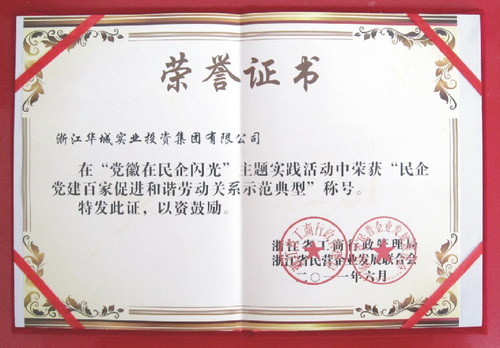 自活動(dòng)開(kāi)展以來(lái),得到了各單位、各企業(yè)的積極響應(yīng),涌現(xiàn)出了一大批在促進(jìn)企業(yè)科學(xué)發(fā)展、助推民企創(chuàng)新轉(zhuǎn)型、構(gòu)建和諧勞動(dòng)關(guān)系、履行社會(huì)責(zé)任等方面的先進(jìn)典型。經(jīng)過(guò)認(rèn)真評(píng)審,省工商局、省民營(yíng)企業(yè)發(fā)展聯(lián)合會(huì)決定授予100家民企為 “民企黨建促進(jìn)和諧勞動(dòng)關(guān)系示范典型”,這次受到表彰的百家先進(jìn)黨建民企典型,無(wú)不是中國(guó)企業(yè)界的佼佼者。浙江華城實(shí)業(yè)投資集團(tuán)有限公司榜上有名,被光榮地授予“民企黨建促進(jìn)和諧勞動(dòng)關(guān)系示范典型”稱(chēng)號(hào)。