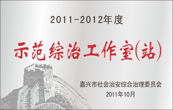 本報(bào)訊 近日,我集團(tuán)公司被嘉興市社會(huì)治安綜合治理委員會(huì)光榮地命名為“2011-2012年度示范綜治工作站”。