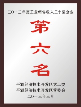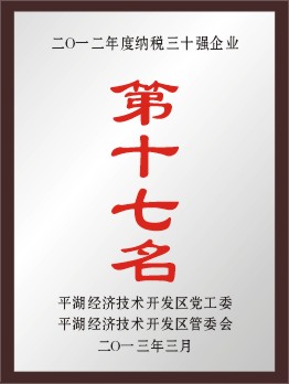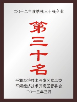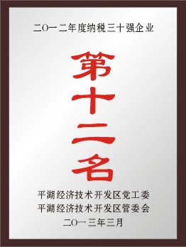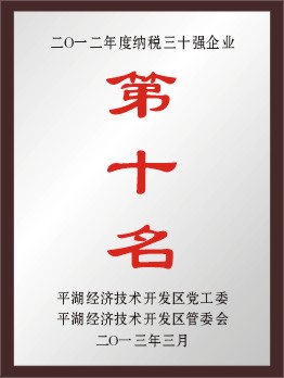 平湖市華城制衣有限公司榮獲平湖經(jīng)濟(jì)技術(shù)開(kāi)發(fā)區(qū)二0一二年度納稅三十強(qiáng)企業(yè)第十二名;