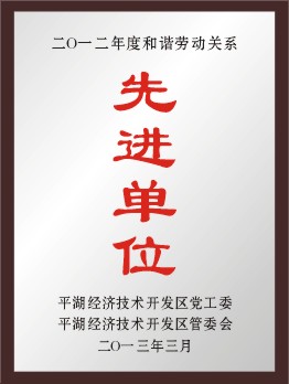 華城實(shí)業(yè)投資集團(tuán)有限公司榮獲平湖經(jīng)濟(jì)技術(shù)開(kāi)發(fā)區(qū)二0一二年度和諧勞動(dòng)關(guān)系先進(jìn)單位;