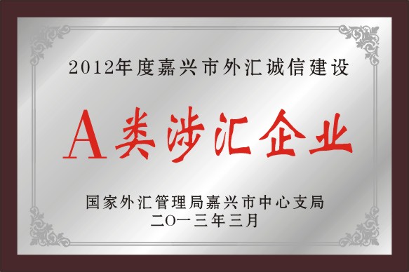 我公司榮獲“2012年度嘉興市外匯誠信建設A類涉匯企業(yè)”