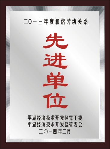 平湖經(jīng)濟(jì)技術(shù)開發(fā)區(qū)和諧勞動(dòng)關(guān)系先進(jìn)單位: