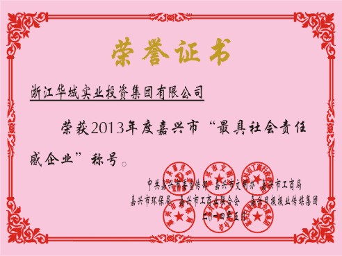 由嘉興市委宣傳部、市文明辦、市工商局、市環(huán)保局、市工商聯、《嘉興日報》報業(yè)傳媒集團聯合主辦,《南湖晚報》承辦的嘉興市首屆“最具社會責任感企業(yè)(家)”評選活動,日前評出結果,華城集團喜獲嘉興市首屆“最具社會責任感企業(yè)”稱號。