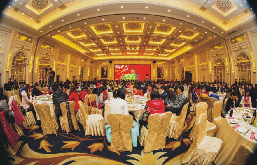 中午十一點(diǎn),來自華城衣歌路的劉立業(yè)和華城制衣的馬冰妍含笑登臺,作為本次聯(lián)歡會的主持人,他們以精彩的開場白拉開了聯(lián)歡會的序幕。之后,員工代表一一上場,華城茂麓趙芳賢、華城衣歌路李小玉、華城制衣陶亞麗、平湖圣雷克大酒店楊燕這四位員工聲情并茂的發(fā)言,集中體現(xiàn)了我們?nèi)A城優(yōu)秀企業(yè)文化在企業(yè)建設(shè)中起到的重要作用,說出了華城集團(tuán)5000員工的心聲,企業(yè)文化已經(jīng)成了華城員工成長不可缺少的精神食糧。繼員工代表發(fā)言之后,張董上臺講話,在肯定了過去所取得成績的同時(shí),張董對未來的發(fā)展寄予了深切的希望,動(dòng)員大家要一如既往地同心協(xié)力,讓更多的員工參與到企業(yè)文化建設(shè)中來。最后,文藝表演在午宴時(shí)華麗開場。一道道精致的菜品,一個(gè)個(gè)喜慶的節(jié)目,完美的溝通,熱烈的互動(dòng),讓聯(lián)歡會更接地氣,更貼人心,更富特色,圣湖廳成了歡樂的海洋。