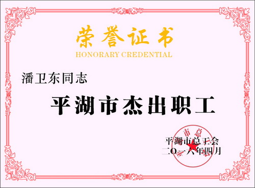 當(dāng)前位置:首頁 > 華城動(dòng)態(tài)為總結(jié)經(jīng)驗(yàn),樹立典型,弘揚(yáng)先進(jìn),努力推動(dòng)并形成勞動(dòng)最光榮、勞動(dòng)最崇高、勞動(dòng)最偉大、勞動(dòng)最美麗的社會(huì)風(fēng)尚,日前在平湖市總工會(huì)主辦的5.1表彰大會(huì)暨首屆職工文化節(jié)讀書活動(dòng)啟動(dòng)儀式上, 18個(gè)集體被授予平湖市“工人先鋒號(hào)”榮譽(yù)稱號(hào),10名個(gè)人獲得平湖市“杰出職工”榮譽(yù)稱號(hào)。我公司員工潘衛(wèi)東榮獲平湖市“杰出職工”榮譽(yù)稱號(hào)。