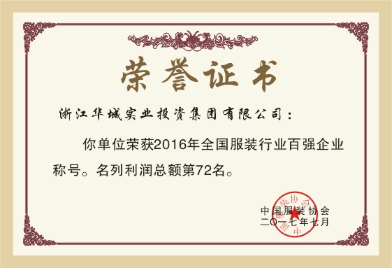 近年來,集團(tuán)公司堅持依托主業(yè),在經(jīng)營服裝加工、從事外貿(mào)出口業(yè)務(wù)中始終保持穩(wěn)健發(fā)展,取得了良好的經(jīng)營業(yè)績,對社會作出了較大貢獻(xiàn),不僅高居平湖服裝行業(yè)20強(qiáng)之首,而且在全國服裝行業(yè)百強(qiáng)企業(yè)排列中也是榜上有名,再次入圍2016年百強(qiáng)企業(yè)評選,榮獲產(chǎn)品銷售收入第55名;利潤總額第72名;銷售利潤率第90名的佳績。這是集團(tuán)公司自2005年以來連續(xù)十二年獲此殊榮,再次顯示了華城集團(tuán)努力拼搏的成功與輝煌。當(dāng)然,榮譽(yù)的取得離不開公司領(lǐng)導(dǎo)層的智慧決策,更離不開我們?nèi)A城全體員工的不懈努力和傾情付出,而這些都得益于公司上下將企業(yè)文化根植于心,大家擰成一股繩,共同為企業(yè)的健康發(fā)展發(fā)揮自己的效力。