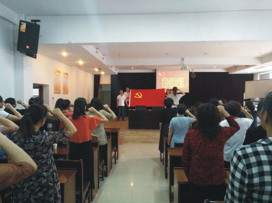 活動分三個流程:一,重溫入黨誓詞。會議室內(nèi),面對鮮艷的黨旗,全體黨員莊嚴肅立,舉起右拳,一字一句重溫入黨誓詞。12句誓詞,80個字,句句鏗鏘,字字珠璣,回蕩在每個黨員心間,增強了黨員的責任感、光榮感,激勵著黨員們積極發(fā)揮表率作用,時刻維護黨的榮譽和企業(yè)利益。重溫入黨誓詞,牢記初心使命,堅持崇高理想,扎實做好本職!