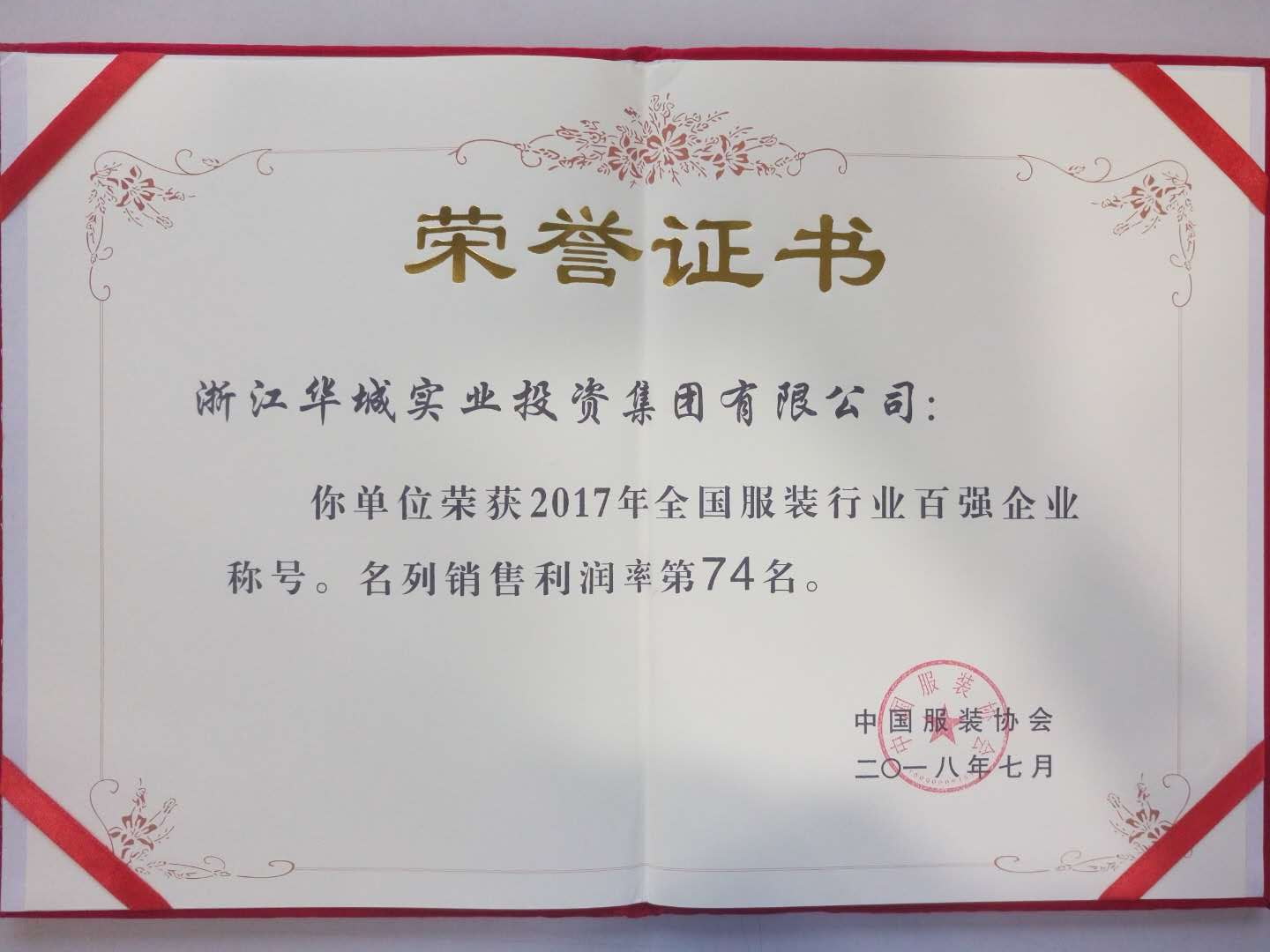 熱烈祝賀華城集團再次榮獲“全國服裝行業(yè)百強企業(yè)”稱號