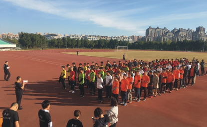 員工們七點(diǎn)半就集合,從酒店?yáng)|崗跑步至體育場(chǎng)。運(yùn)動(dòng)會(huì)開幕式八點(diǎn)左右精彩開場(chǎng),酒店副總經(jīng)理王國(guó)權(quán)為開幕式致辭并宣布比賽開始。本次比賽共有5組隊(duì)伍:紅色為餐飲2隊(duì),金黃色為餐飲1隊(duì),橘黃色有銷售部、安全部、人事部組成,綠色為娛樂(lè)部,白色有客房部、前廳部、工程部組成。