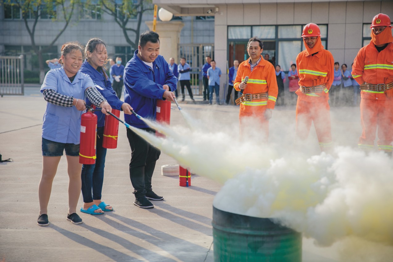 演習(xí)分三個(gè)部分,一是現(xiàn)場(chǎng)緊急疏散,二是消防知識(shí)講解,三是消防器材應(yīng)用。當(dāng)警鈴響起,員工們都馬上放下手中的工作,沿著消防逃生指示箭頭有序疏散,魚貫撤離。新員工跟著老員工,管理人員指揮各小組所有員工,大家以最快的速度來到安全地帶集合,開始第二個(gè)流程消防知識(shí)的講解。由各分廠消防安全負(fù)責(zé)人,給大家講解消防知識(shí),主要有消防日常管理、檢查和疏散逃生的基本常識(shí),以及消防器材的正確使用方法,并結(jié)合實(shí)際對(duì)火災(zāi)發(fā)生、發(fā)展的基本規(guī)律進(jìn)行講解,讓大家進(jìn)一步了解火災(zāi)特點(diǎn),掌握消防安全知識(shí)。最后是消防器材的應(yīng)用。在負(fù)責(zé)人演示過后,員工們都積極上前,親自體會(huì)滅火器的使用方法。