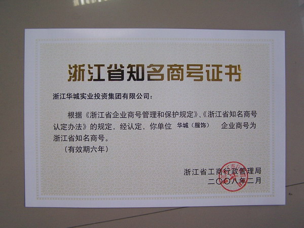 根據《浙江省企業(yè)商號管理和保護規(guī)定》、《浙江省知名商號認定辦法》,經浙江省知名商號評審委員會評審,我省有97件企業(yè)商號被認定為浙江省知名商號,其中嘉興市有10件企業(yè)商號,我公司“華城(服飾)”商號榜上有名。 知名商號的被認定是商號保護體系中的行政保護,對知名企業(yè)不被侵權具有現實意義。