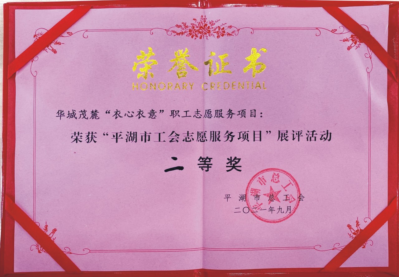 此次志愿服務(wù)項(xiàng)目喜獲“平湖市工會(huì)志愿服務(wù)項(xiàng)目”展評(píng)活動(dòng)二等獎(jiǎng),給予了我們志愿服務(wù)隊(duì)極大的肯定及動(dòng)力。“衣心衣意”職工志愿服務(wù)隊(duì)將會(huì)在工會(huì)的指引下,以更強(qiáng)擔(dān)當(dāng)參與志愿服務(wù),打造具有美譽(yù)度、辨識(shí)度的工會(huì)志愿服務(wù)品牌,讓志愿精神在華城“熠熠生輝”。