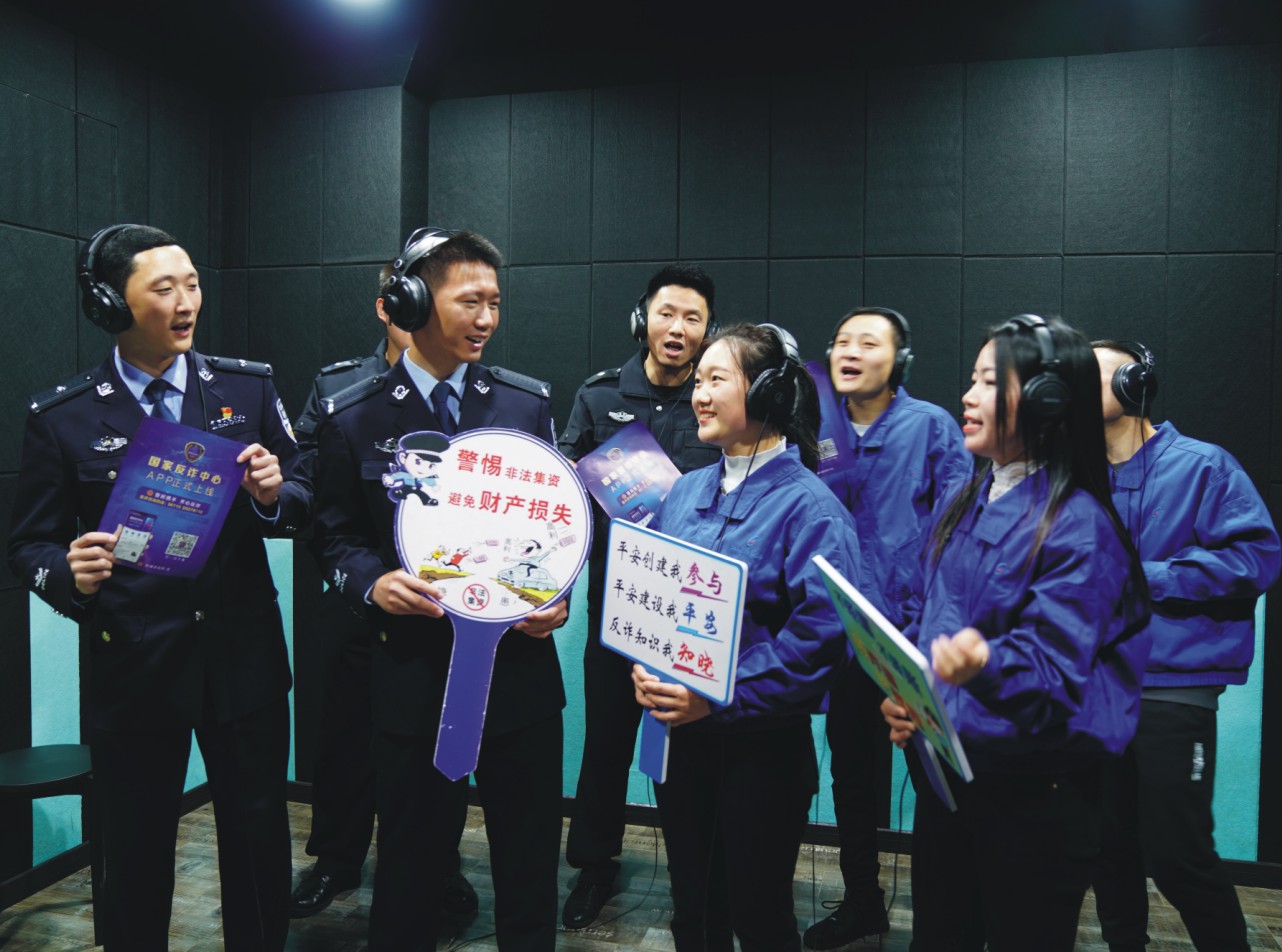 改編后的《恭喜發(fā)財》,由鐘埭派出所民警張鑫、鐘偉恩、王怡靚、魏平,以及華城衣歌路員工田丹、吳洪瓊、劉好、韓碩共同演唱。歌詞易記、簡單好學,一起來唱,共同筑牢新春識騙拒騙“防火墻”!
