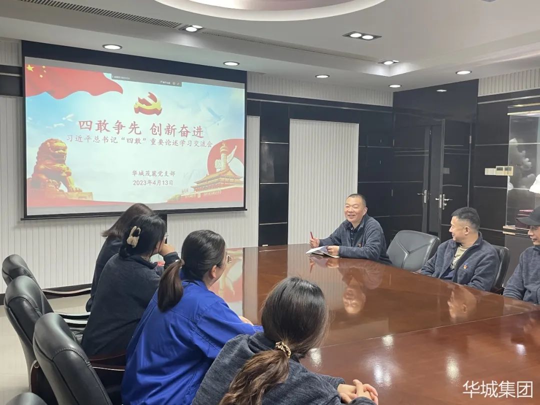 當(dāng)前位置:首頁 > 華城動(dòng)態(tài)為深入學(xué)習(xí)貫徹黨的二十大精神,持續(xù)深化黨建引領(lǐng)作用,進(jìn)一步提升黨員黨性修養(yǎng),不斷增強(qiáng)黨組織凝聚力和敢為、敢闖、敢干、敢首創(chuàng),弘揚(yáng)“四敢”精神,汲取奮進(jìn)力量。黨委各支部就“四敢”精神重要論述分別召開支部黨員會(huì)議學(xué)習(xí)討論。戰(zhàn)斗力,4月13日,華城集團(tuán)黨委開展“追尋紅色記憶”主題黨日活動(dòng)。一百余位黨員參加活動(dòng)。