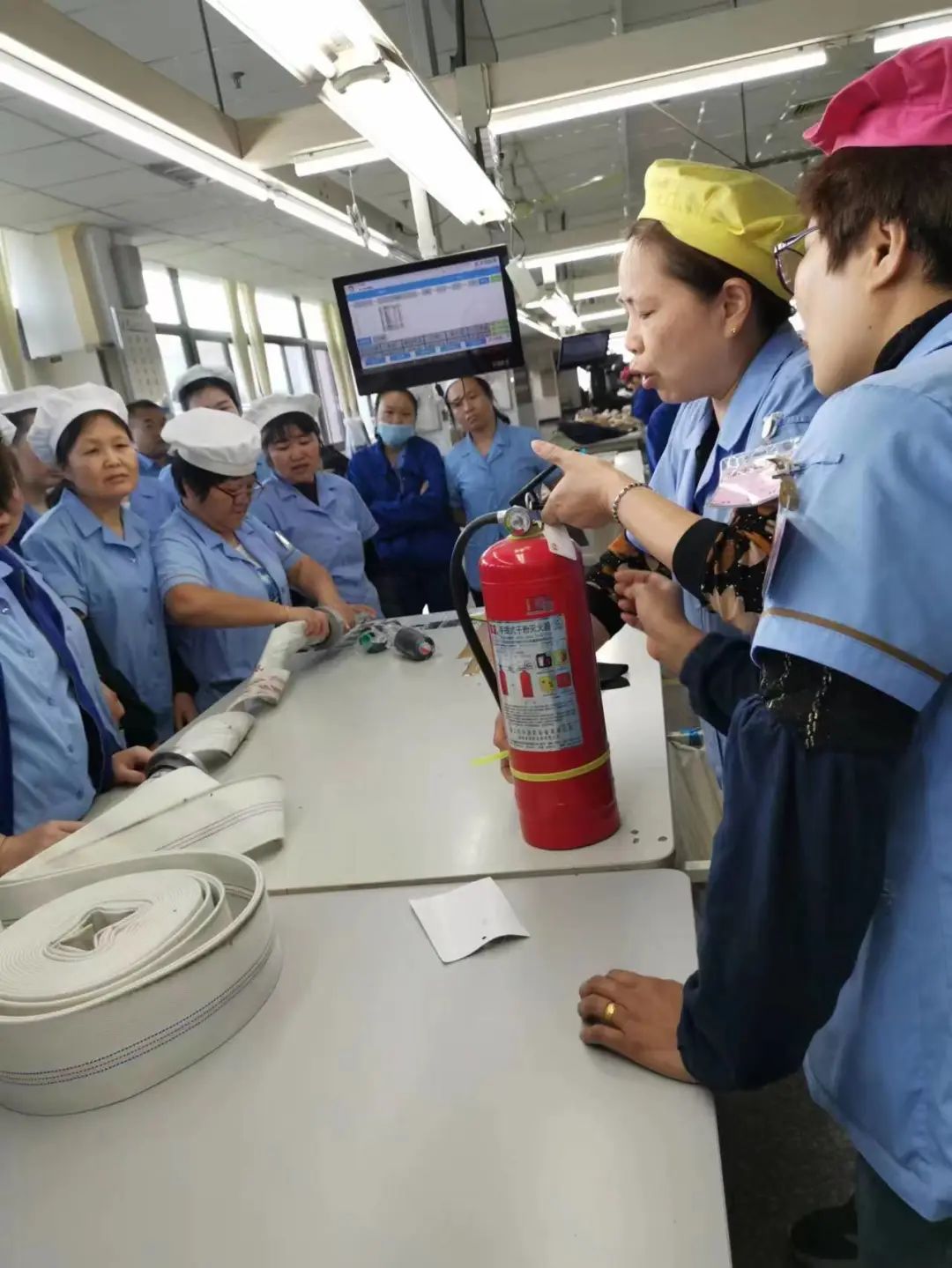 在車(chē)間里,利用開(kāi)晨會(huì)的時(shí)間,每個(gè)小組由組長(zhǎng)培訓(xùn),如何正確使用水槍及滅火器,并且讓員工參與到培訓(xùn)中。通過(guò)手把手的培訓(xùn),以及實(shí)操,讓每個(gè)員工對(duì)水槍及滅火器的使用熟練掌握。