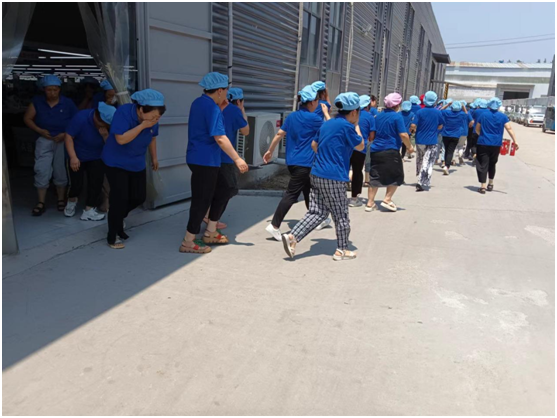 本次演練在企管楊柳的組織下順利進行。上午10點警鈴響起,所有員工聽到警鈴聲迅速彎腰、手捂口鼻到達緊急疏散集合點。
