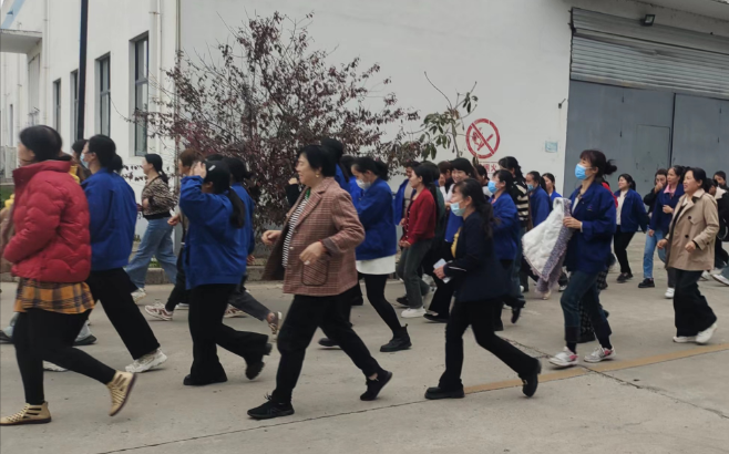 隨著一陣急促的警報聲響起,疏散演練正式開始。全體員工按照演練預(yù)案開展了火場逃生演習(xí)。同事們紛紛掩住口鼻,壓低姿勢彎著腰,安全、快速、有序地逃出生產(chǎn)車間,到達(dá)指定的安全地點。