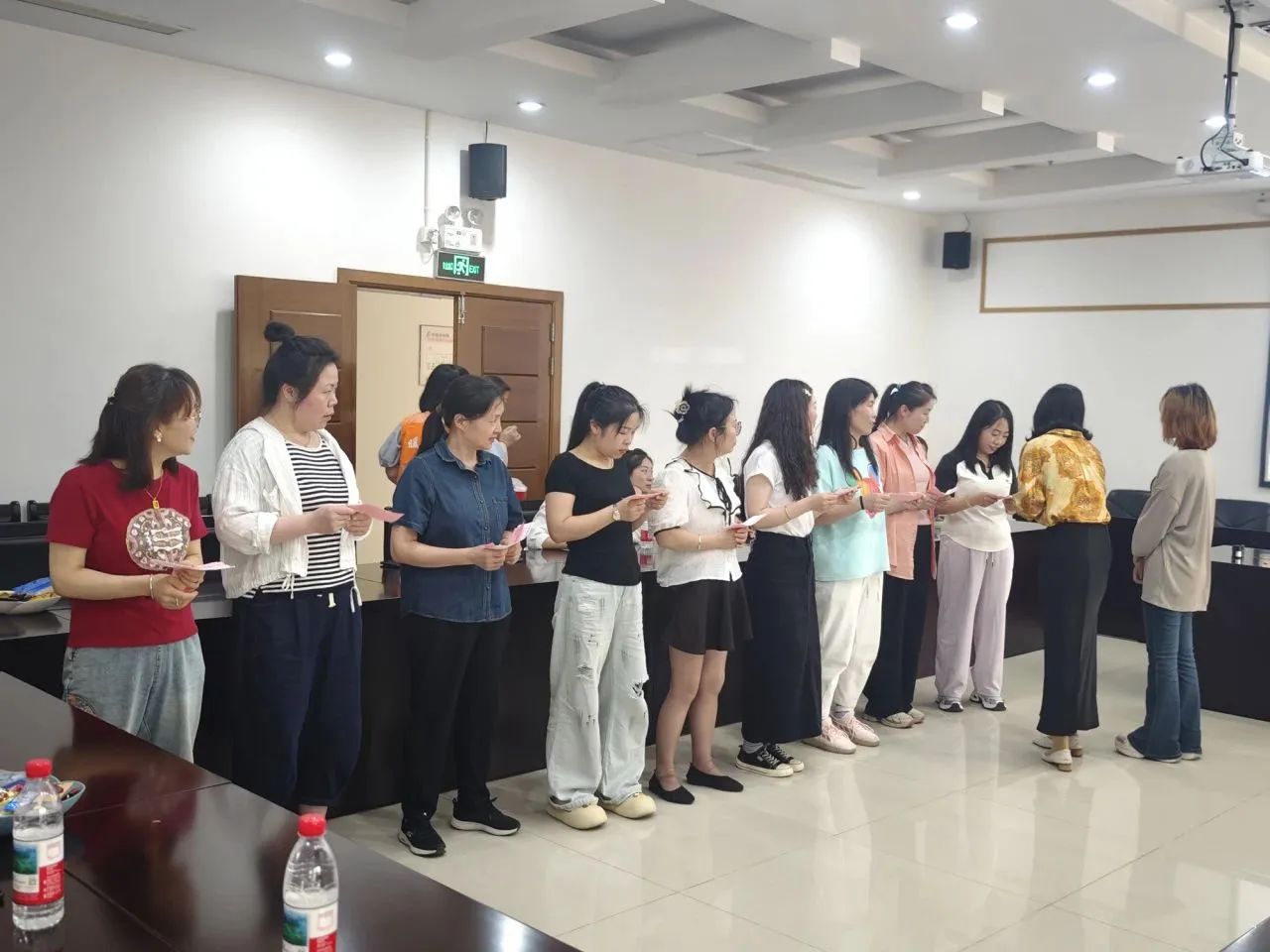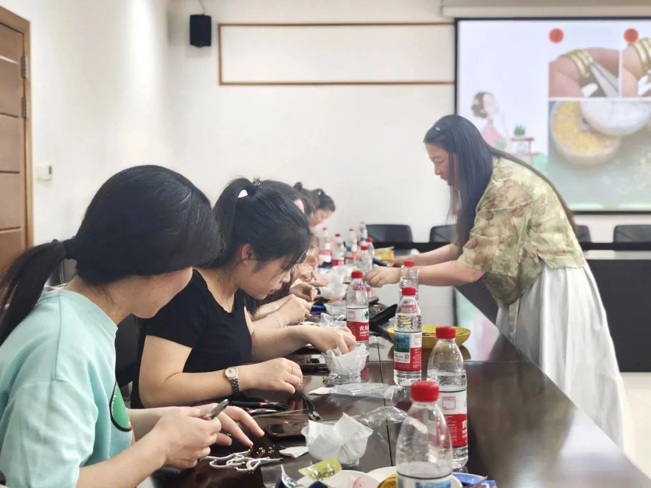 在精彩的講座結(jié)束之后,緊接著是一場(chǎng)沉浸于古典韻味的“非遺壓襟”體驗(yàn)活動(dòng),讓企業(yè)員工們仿佛穿越回古代,領(lǐng)略傳統(tǒng)文化的非凡魅力�;顒�(dòng)伊始,佳子老師向員工們深入講解了“壓襟”這一非物質(zhì)文化遺產(chǎn)的起源和制作特色。在制作中,通過(guò)佳子老師的悉心指導(dǎo),大家從選擇材料的順序、構(gòu)思設(shè)計(jì)到組裝,每一步都充滿(mǎn)了樂(lè)趣和挑戰(zhàn)。