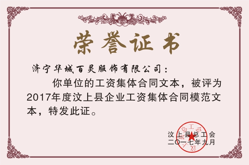 與會(huì)人員觀看了汶上縣工資集體協(xié)商紀(jì)實(shí)片,總結(jié)了2017年上半年工資集體協(xié)商工作,李春生同志宣讀了《關(guān)于表彰汶上縣企業(yè)工資集體協(xié)商合同文本展評(píng)先進(jìn)單位的決定》,段主席、白部長分別對(duì)獲獎(jiǎng)企業(yè)進(jìn)行頒獎(jiǎng),授予濟(jì)寧華城百靈服飾有限公司等5家企業(yè)工資集體協(xié)商合同模范文本,各獎(jiǎng)現(xiàn)金2000元。會(huì)上模范文本企業(yè)代表作了交流發(fā)言,學(xué)習(xí)了開展工資集體協(xié)商的先進(jìn)經(jīng)驗(yàn),交流了優(yōu)秀做法,充分調(diào)動(dòng)了企業(yè)、職工參與協(xié)商的積極性。